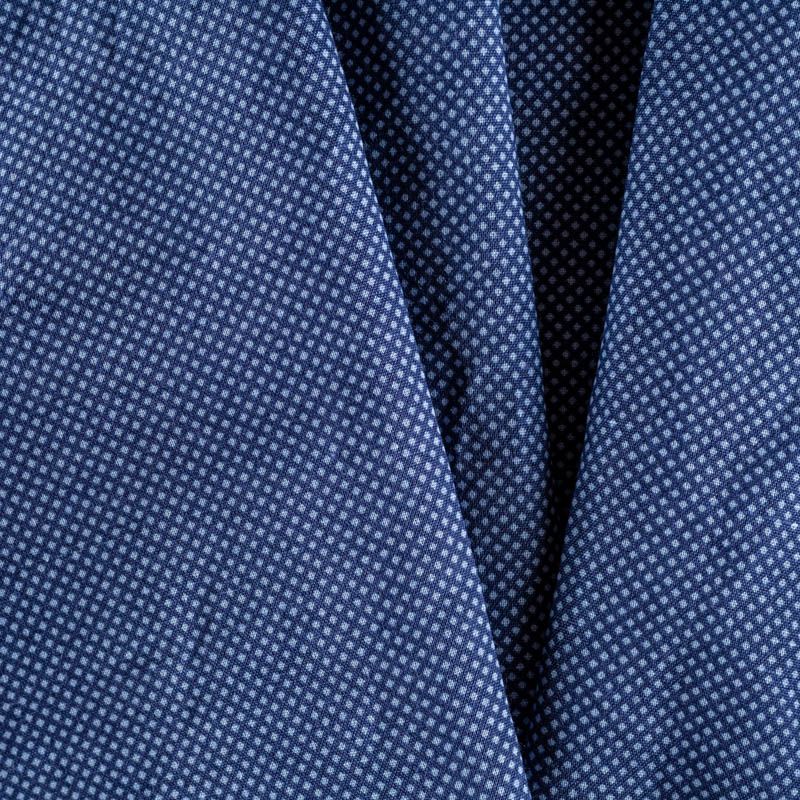 Плательно-рубашечный лен с мелким геометрическим рисунком. Ткань легкая, средней плотности, поверхность матовая. Приятная на ощупь, хорошо держит форму, немного тянется. Отличный вариант для летних летящих платьев, сарафанов, рубашек.