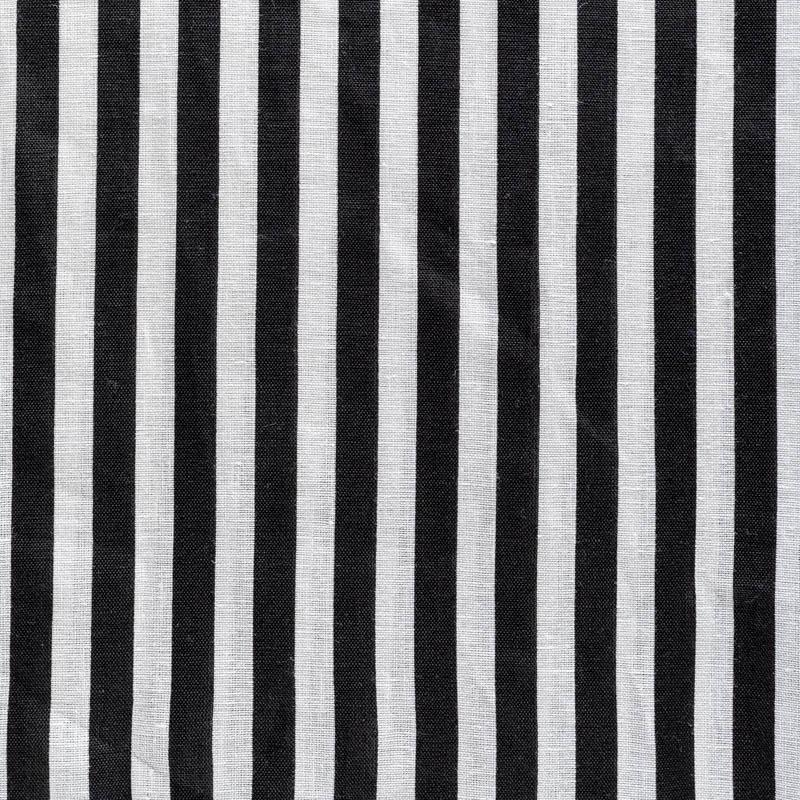 Плательно-рубашечный лен в черно-молочную полоску. Ткань легкая, средней плотности, поверхность матовая. Приятная на ощупь, хорошо держит форму. Отличный вариант для летних  платьев, сарафанов, рубашек, брюк или шорт.