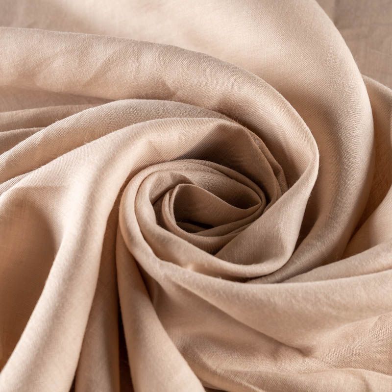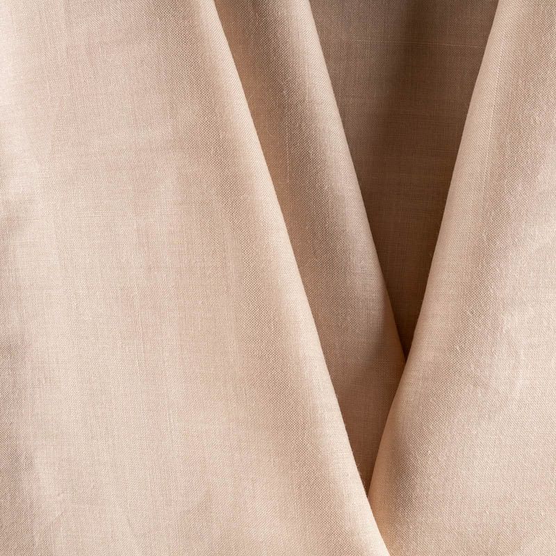 Плательно-рубашечный лен теплого песочного оттенка. Ткань легкая, средней плотности, поверхность матовая. Приятная на ощупь, хорошо держит форму, немного тянется. Отличный вариант для летних платьев, сарафанов, рубашек, брюк или шорт.