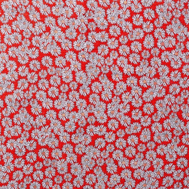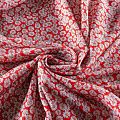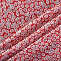 Итальянский плательно-рубашечный лен с добавлением вискозы с мелким цветочным принтом на ярком красном фоне. Ткань прочная, но тонкая, имееет выразительную матовую рельефную поверхность и полотняное переплетение, хорошо держит форму. Подойдет для пошива весенне-летних платьев, брюк, шорт, топов, сарафанов.