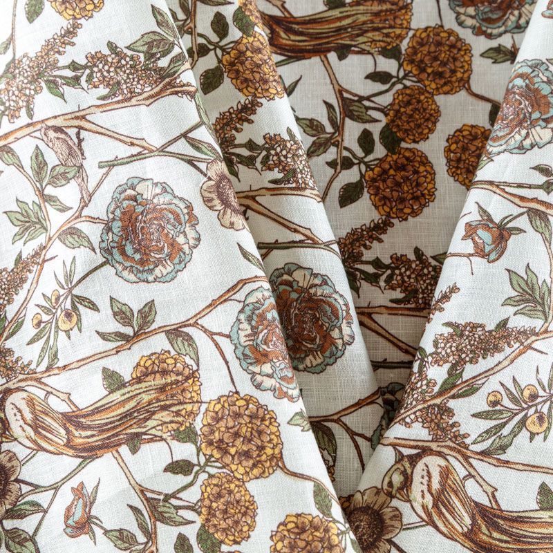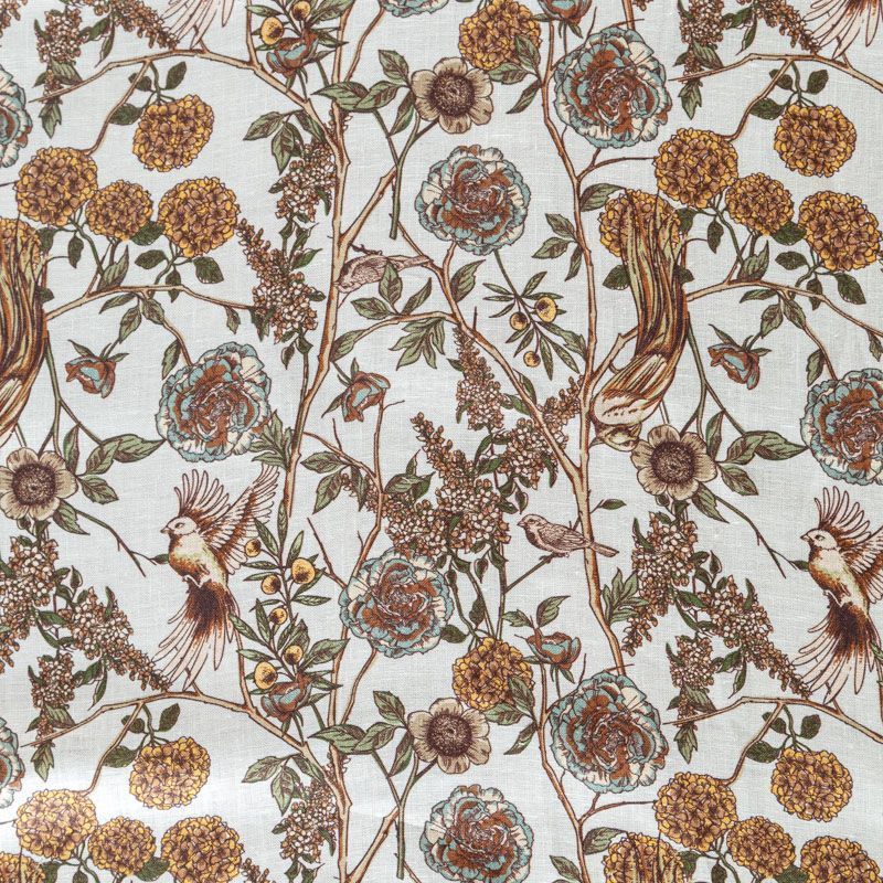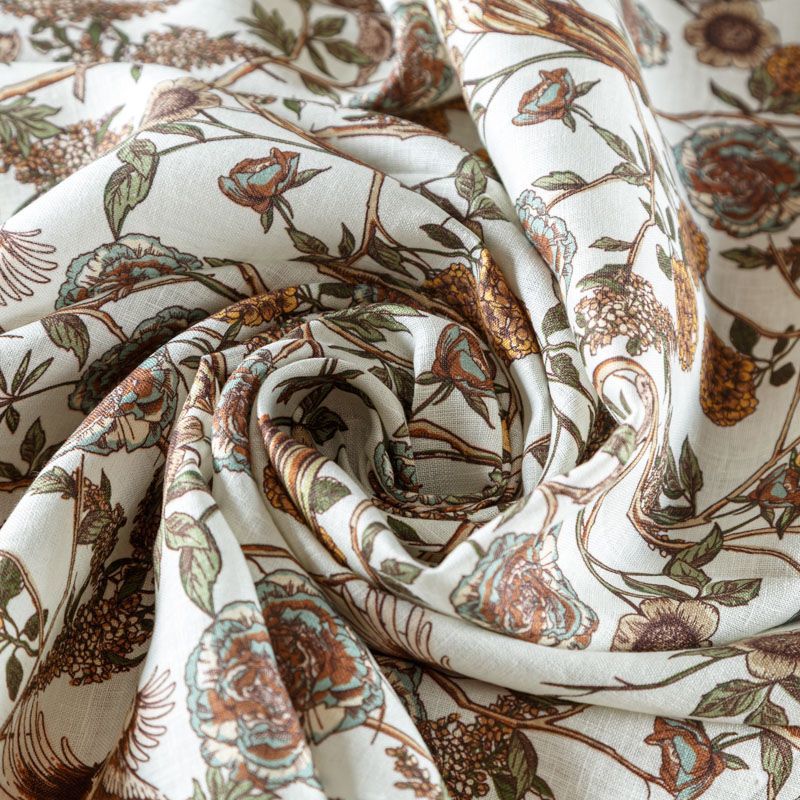 Итальянский плательно-рубашечный лен с добавлением вискозы средней плотности с растительным принтом в спокойных оттенках. Ткань прочная, имеет матовую рельефную поверхность и полотняное переплетение, немного просвечивает, отлично держит форму, пластичная, комфортная в изделии. Отлично подойдет для пошива для летних костюмов, рубашек, туник, платьев, сарафанов, юбок, жакетов, брюк или шорт.