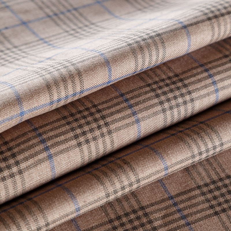 Итальянский костюмно-плательный лен с добавлением вискозы в бежевого оттенка в элегантную клетку. Ткань прочная, имееет на ощупь приятную поверхность, визуально - выраженный рельеф и полотняное переплетение, держит форму, пластичная. Подойдет для пошива летних костюмов, жилета, брюк, шорт, в том числе мужских, юбок, платьев, сарафанов, топов, комбинезонов, жакетов, кардиганов.