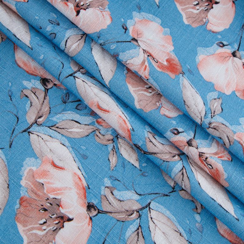 Лен-вискоза 035-13864 голубой принтованный в Норильске