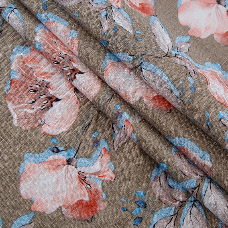 Лен-вискоза 035-13865 песочно-бежевый принтованный в Норильске
