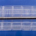 Лента драпировочная прозрачная с поперечными петлями для карниза. Коэффициент сборки: 1:2.0. Количество складок - 1. Раппорт 80 мм. Расстояние между складками 40 мм. Количество рядов кармашков - 2. Количество стягивающих шнуров - 4. Расстояние между петлями 165 мм. Максимальная глубина складки 20 мм.