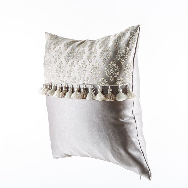 Оригинальная дизайнерская наволочка на подушку 45х45 см. Выполнена из бархата и жаккарда и декорирована бахромой. Потайная молния расположена в нижнем шве. Декоративные подушки сделают акцет на цветовой гамме Вашего помещения, подчеркнут особенности интерьерного стиля или тематику оформления. Внимание! Подушка-вкладыш или синтепон приобретаются отдельно.
