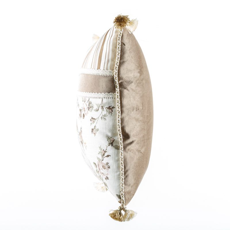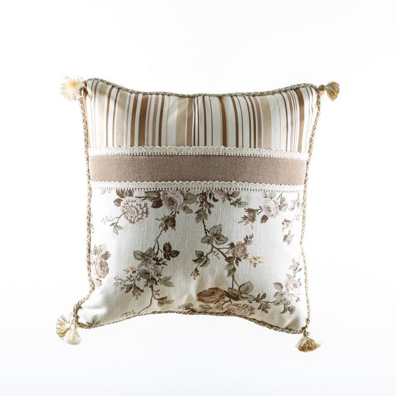 Оригинальная дизайнерская наволочка на подушку 45х45 см. Декорирована витым шнуром, ажурной тесьмой и кисточками. Потайная молния расположена в нижнем шве. Декоративные подушки сделают акцет на цветовой гамме Вашего помещения, подчеркнут особенности интерьерного стиля или тематику оформления. Внимание! Подушка-вкладыш или синтепон приобретаются отдельно.