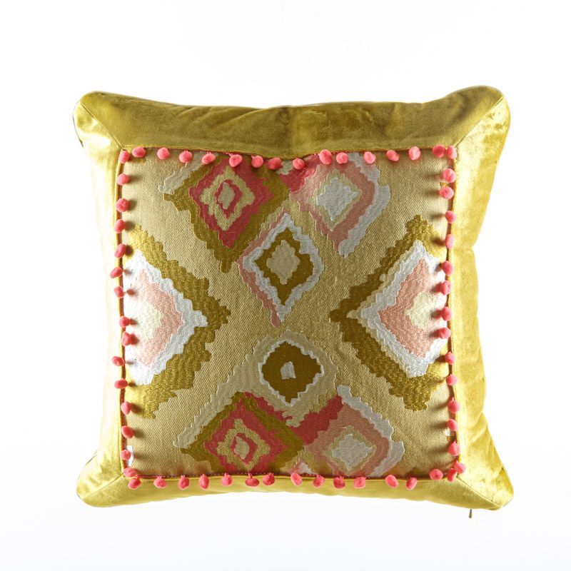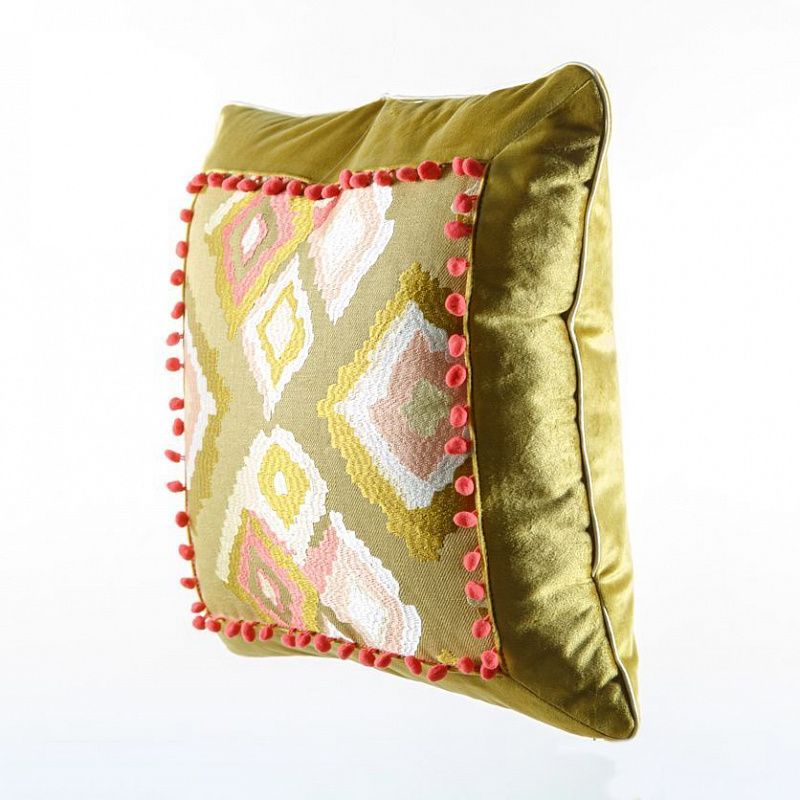 Оригинальная дизайнерская наволочка на подушку 45х45 см. Декорирована круглым кантом и тесьмой с помпонами. Потайная молния расположена в нижнем шве. Декоративные подушки сделают акцет на цветовой гамме Вашего помещения, подчеркнут особенности интерьерного стиля или тематику оформления. Внимание! Подушка-вкладыш или синтепон приобретаются отдельно.