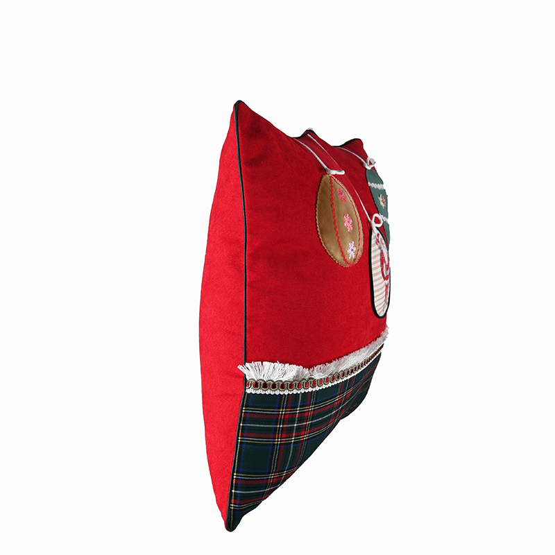 Оригинальная дизайнерская наволочка на подушку 45х45 см Выполнена из мягкой ткани в новогодней тематике, декорирована аппликацией, бахромой, контрастным кантом и тесьмой. Потайная молния расположена в нижнем шве. Декоративные подушки сделают акцет на цветовой гамме Вашего помещения, подчеркнут особенности интерьерного стиля или тематику оформления. Внимание! Подушка-вкладыш или синтепон приобретаются отдельно.