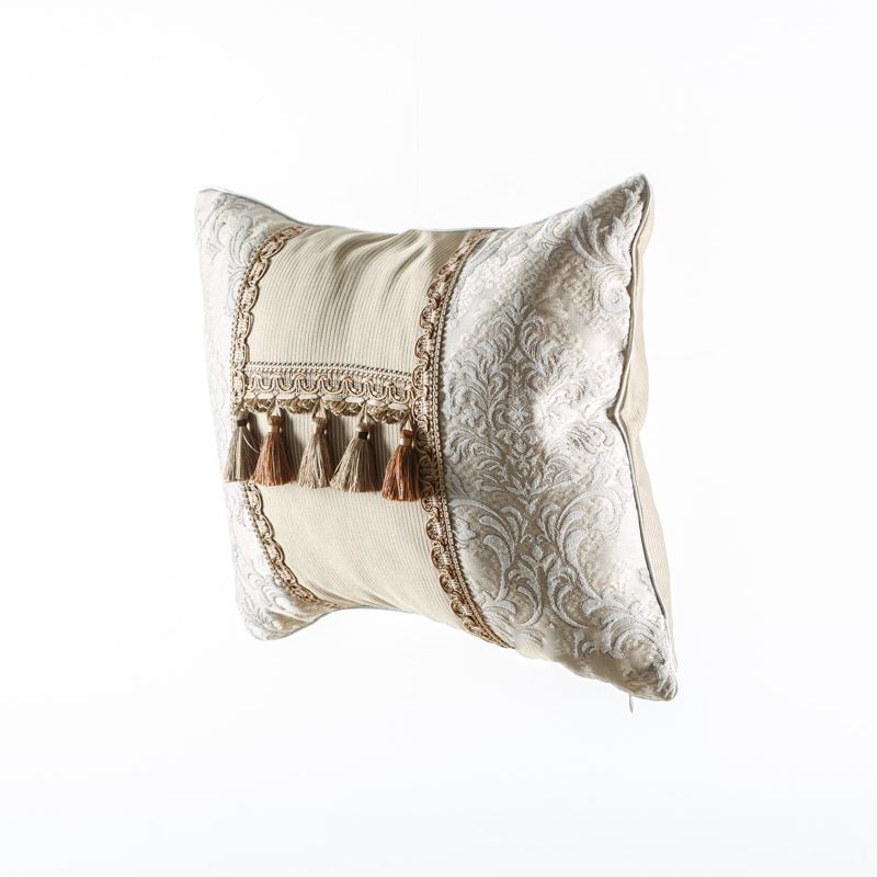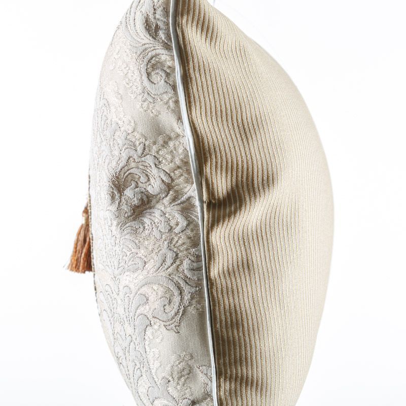 Оригинальная дизайнерская наволочка на подушку 50х40 см. Выполнена из жаккарда и декорирована круглым кантом, тесьмой и бахромой. Потайная молния расположена в нижнем шве. Декоративные подушки сделают акцет на цветовой гамме Вашего помещения, подчеркнут особенности интерьерного стиля или тематику оформления. Внимание! Подушка-вкладыш или синтепон приобретаются отдельно.