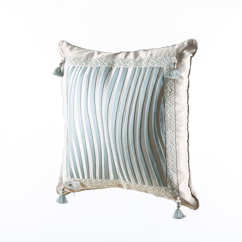 Оригинальная дизайнерская наволочка на подушку 50х50 см. Выполнена из сатина и жаккарда и декорирована тесьмой, кантом и кисточками. Потайная молния расположена в нижнем шве. Декоративные подушки сделают акцет на цветовой гамме Вашего помещения, подчеркнут особенности интерьерного стиля или тематику оформления. Внимание! Подушка-вкладыш или синтепон приобретаются отдельно.