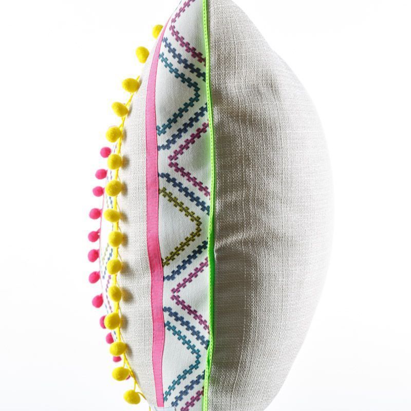 Оригинальная дизайнерская наволочка на подушку 60х40 см. Декорирована контрастым кантом и тесьмой с помпонами. Потайная молния расположена в нижнем шве. Декоративные подушки сделают акцет на цветовой гамме Вашего помещения, подчеркнут особенности интерьерного стиля или тематику оформления. Внимание! Подушка-вкладыш или синтепон приобретаются отдельно.