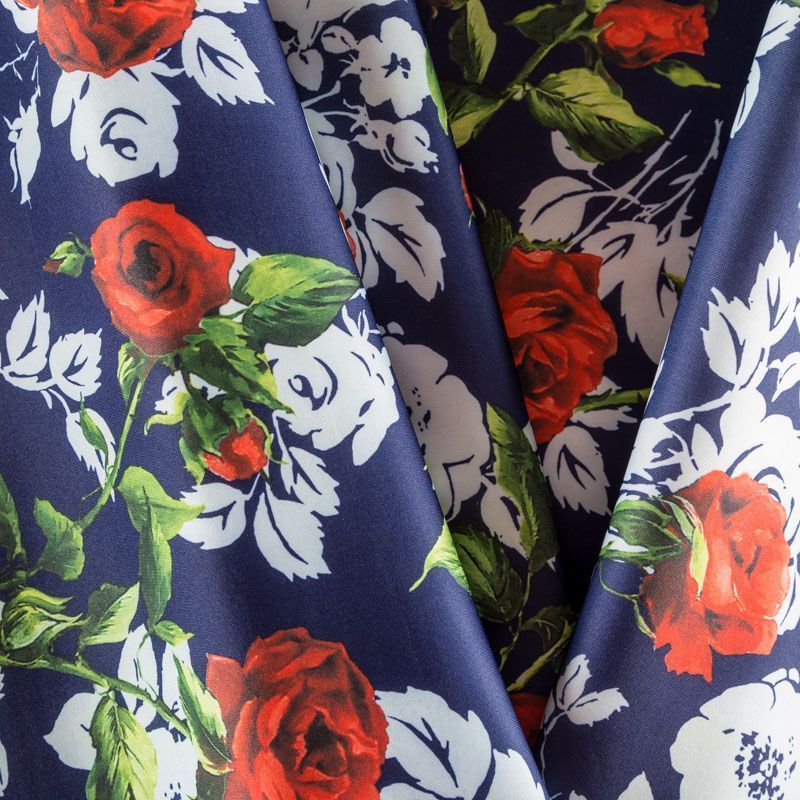 Плотное полотно синего оттенка с красивым ярким цветочным принтом в стиле известного бренда, не тяжелое, гибкое, великолепно держит форму и хорошо тянется. Прочное, практичное, долговечное, совершенно не мнется. Отлично сохраняет тепло. Подойдет для пошива пальто, жакетов, курток, жилетов, бомбера, юбки или шорт.