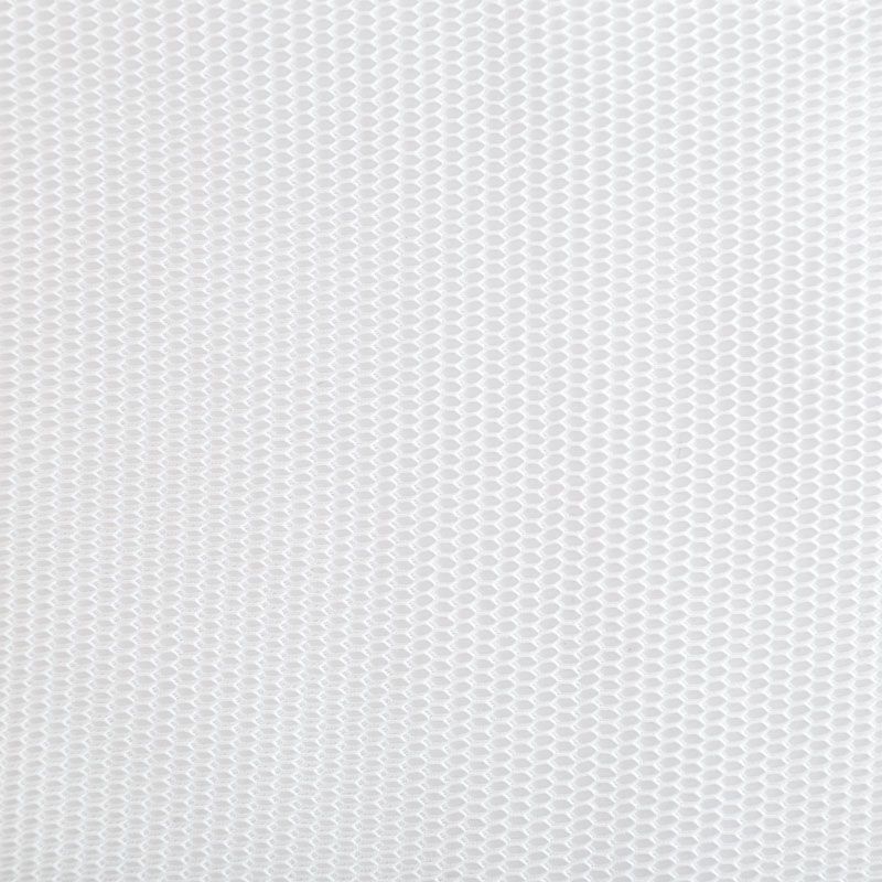 Объемный, эластичный материал белого цвета, состоящий из двойной мелкой сетки, по форме напоминающей соты. Упругое, мягкое с полупрозрачной фактурой полотно, пластичное и довольно прочное. Хорошо тянется, легкое и комфортное. Отлично держит форму. Рекомендуется для пошива объемных изделий или элементов: эксклюзивного жакета, бомбера, платья, юбки.