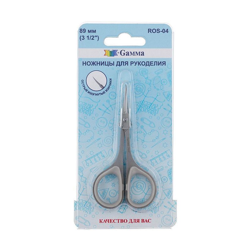 Ножницы Gamma для рукоделия 89 мм с прорезиненными ручками ROS-04 серый