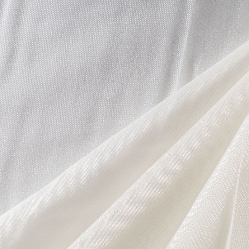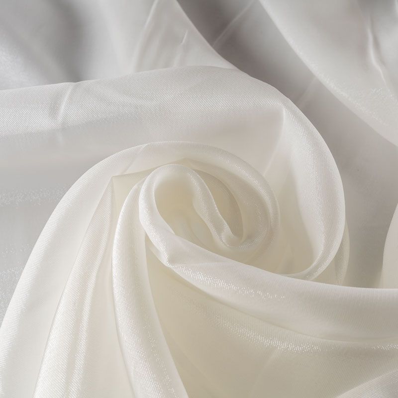 Шелковая органза с искрящейся поверхностью молочного цвета. Легкая, тонкая, пластичная, хорошо драпируется, просвечивает, отлично держит форму. Подойдет на блузку, платье, тунику или юбку на подкладе.