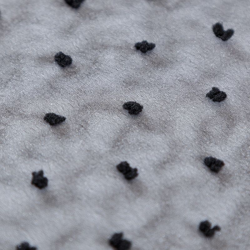 Легчайший, изящный, воздушнный и прозрачный материал с благородной переливчатой поверхностью. Прекрасно держит форму в заложеных складках. На лицевой стороне объемные декоративные элементы из флока диаметром 0.5 см. Подойдет для создания в изделии декоративных деталей, новогодних костюмов, нарядных платьев, блузок.