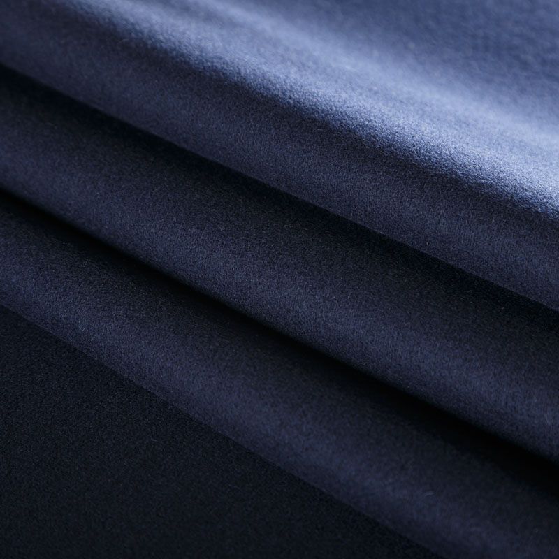 Плотный итальянский шерстяной пальтовый трикотаж темно-синего оттенка. Ткань очень приятная на ощупь, мягкая, пластичная, теплая и уютная. Прекрасно подойдет для пошива легких пальто, пальто на подкладе, теплых жакетов, курток, кардиганов, юбок или шорт.