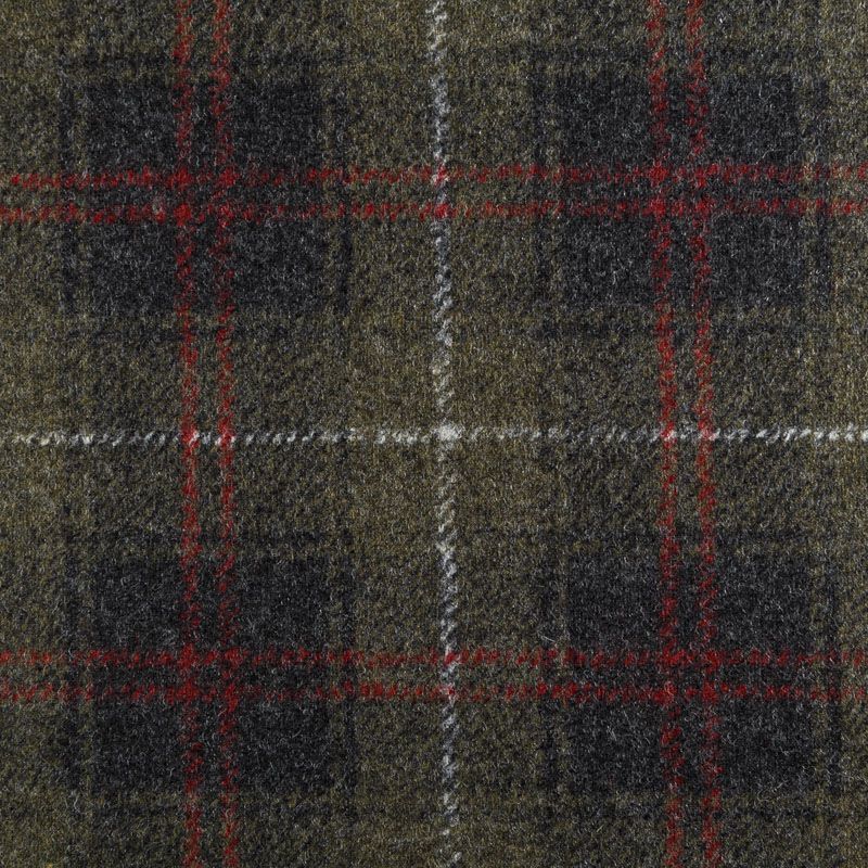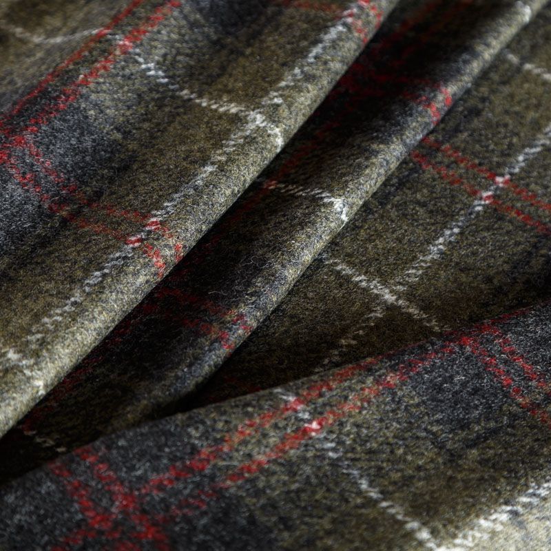 Плотный пальтовый шерстяной трикотаж в оттенке хаки. Линии белого, красного и серого цветов образуют красивую клетку. Обе стороны ткани гладкие, приваляные, срезы не осыпаются, хорошо держит форму, теплый. Идеален для пошива пальто,теплых жакетов, жилетов, кейпа, кардигана.
