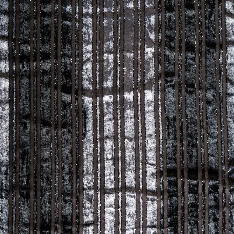 Итальянская шелковая красивая и эффектная ткань с гладким, немного глянцевым ворсовым узором на матовой шифоновой основе черного цвета. Панбархат тонкий, но объемный за счет рельефности рисунка, при драпировке ложится мягкими струящимися складками. Отлично подойдет для пошива блузы, туники, платья, костюма в пижамном стиле.
