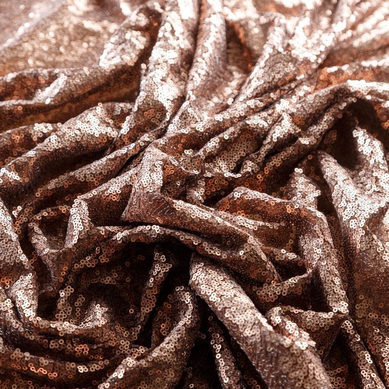 Матовые пайетки в коричневом оттенке. Мелкие, размером около 3 мм, расположены в хаотичном порядке. Основа - мягкая и эластичная сетка.  Ткань полупрозрачная, может потребоваться подклад. Подойдет для вечернего, коктейльного платья, юбки, нарядных детских изделий, танцевальных и сценических костюмов.