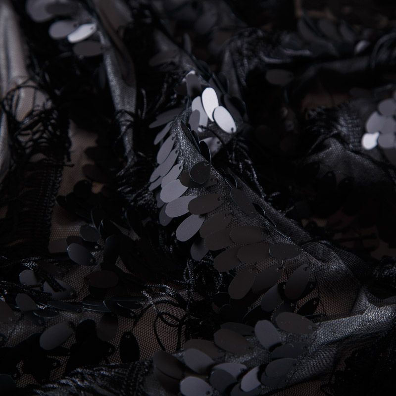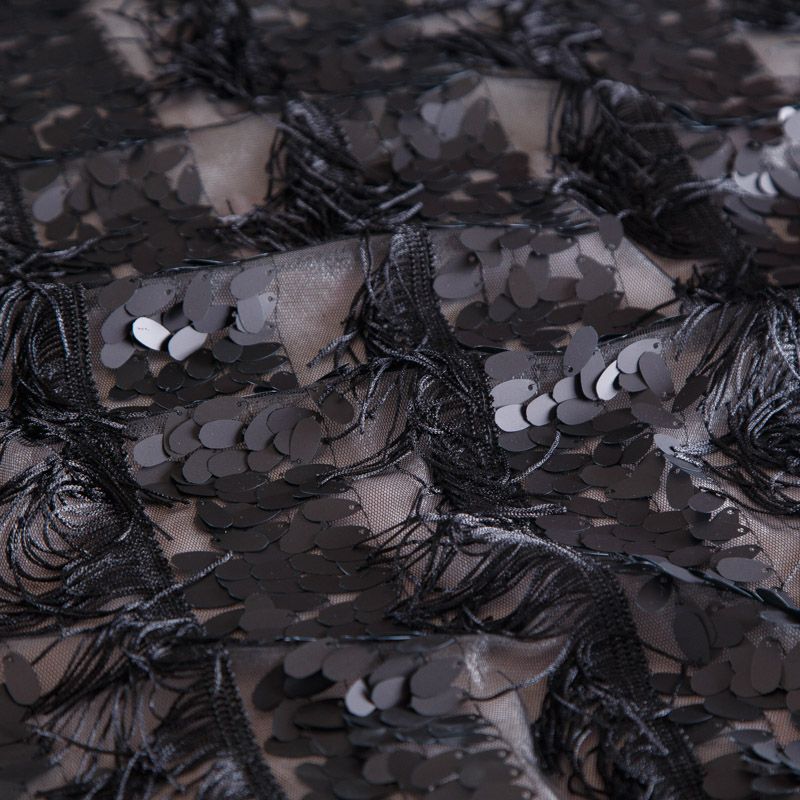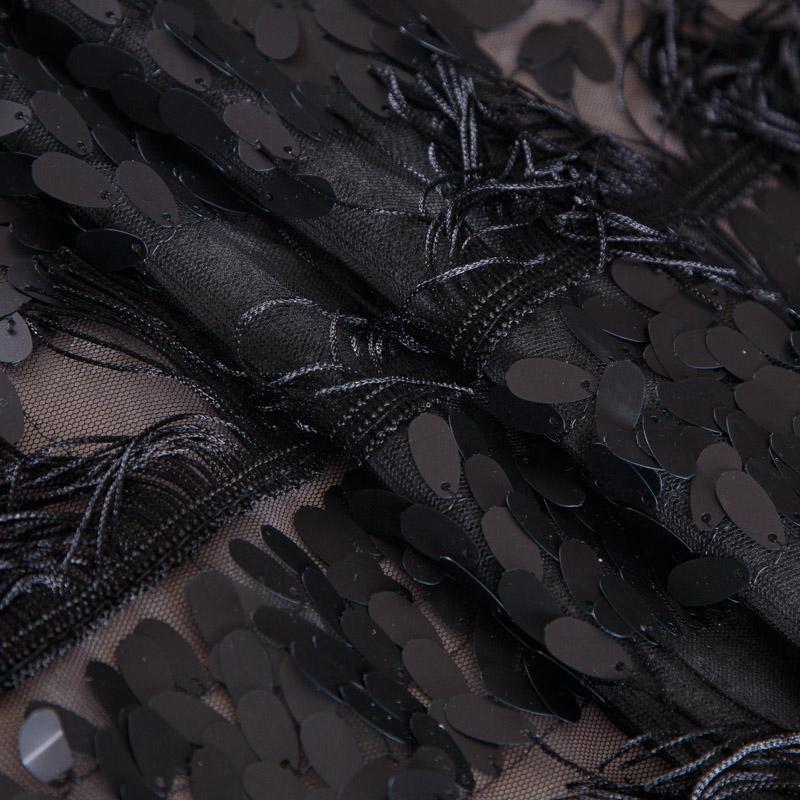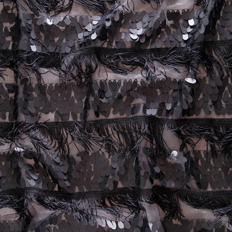 Итальянские пайетки на сетке с бахромой. Горизонтальные полоски пришитых матовых пайеток чередуются с мягкой бахромой. Сетка не тянется, требуется подклад.
