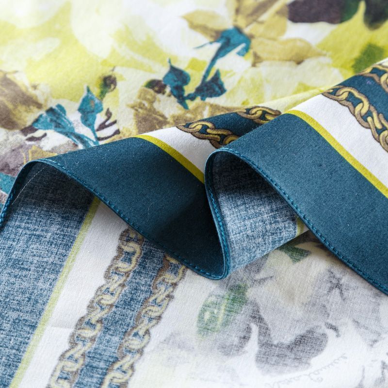 Эффектный и стильный платок с крупными желтыми розами на белом фоне с кантами из цепочек. Платок выполнен из натурального итальянского хлопка. Такой аксессуар добавит свежести и весеннего настроения в Ваш образ.