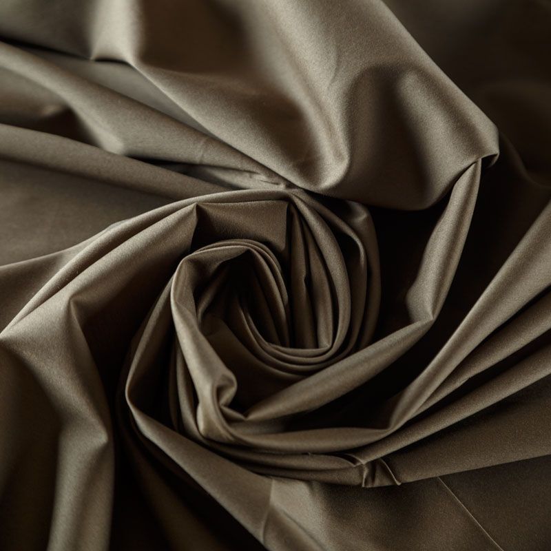 Однотонный плательно-рубашечный смесовый поплин в оттенке хаки. Ткань лёгкая, слегка прозрачная, поверхность матовая, гладкая, приятная к телу, хорошо драпируется, тянется за счет эластана в составе. Прекрасно подойдет блузы, платья-рубашки, летнего сарафана, туники.