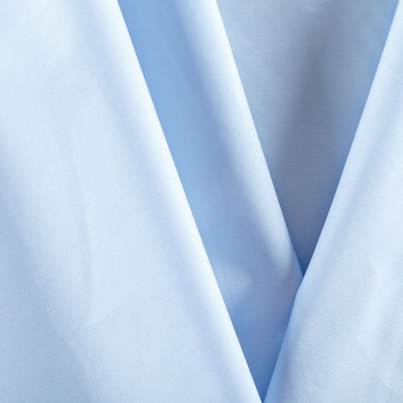 Однотонный гладкокрашенный плательно-рубашечный хлопковый поплин. Ткань лёгкая, слегка прозрачная, поверхность матовая, гладкая, приятная к телу, хорошо драпируется, держит форму. Прекрасно подойдет блузы, платья-рубашки, летнего сарафана, туники.