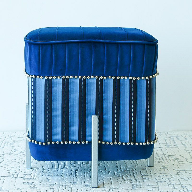Пуф квадратный 44х44 см H 50 см темно-синий бархат 521352