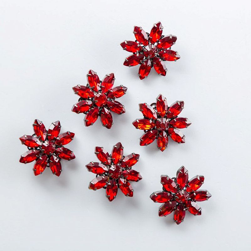 Круглые пришивные, не тяжелые пуговицы, изготовленные прессовым способом из сплава с кристаллическим стеклом винного оттенка. Прекрасно подойдут для различных изделий сегмента верхней одежды, костюмов, вязанной одежды, в качестве украшений.