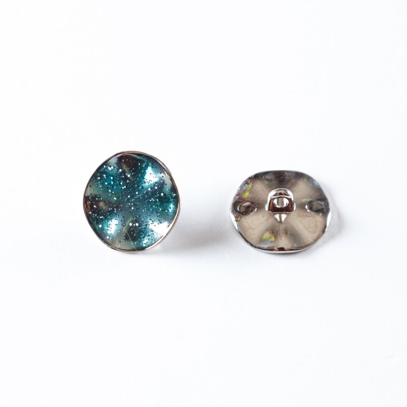 Пуговица на ножке 27 мм металл 493766 серебро/зеленый
