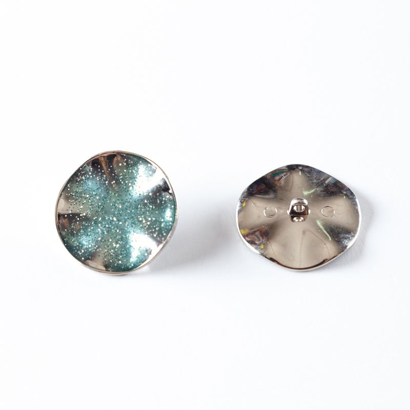Пуговица на ножке 30 мм металл 493742 серебро/зеленый