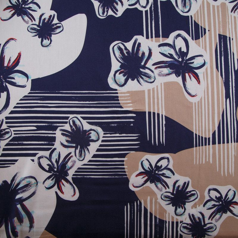 Итальянский хлопковый сатин из коллекции Saint Laurent с абстрактно-цветочным принтом. Поверхность ткани имеет сатиновое плетение и полированный лоск. Подойдет для пошива платьев, сарафанов, рубашек, топов, широких брюк, юбок.