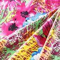 Итальяский плательно-рубашечный хлопок сатинового плетения с крупным ярким принтом. Ткань лёгкая, непрозрачная, поверхность матовая, гладкая, приятная к телу, хорошо драпируется. Прекрасно подойдет блузы, платья-рубашки, летнего сарафана, туники, домашней одежды.