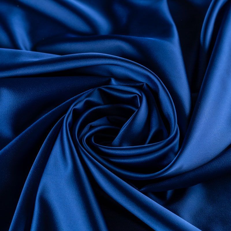 Ткань средней плотности, хорошо тянется, пластичная, отлично драпируется, держит форму, верхняя поверхность имеет благородный сатиновый блеск. Роскошный сатин идеален для пошива нарядных и повседневных платьев, костюмов, брюк, юбок, бомберов.