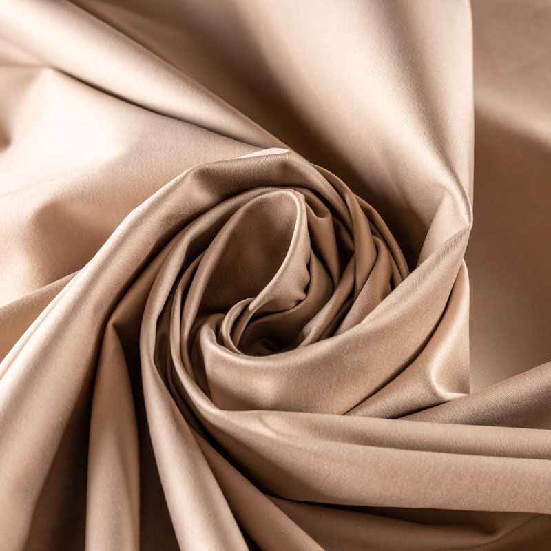 Поверхность гладкая со сдержанным блеском, ткань плотная, но не толстая, хорошо держит форму, тянется