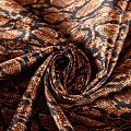 Сатин-коттон черного цвета со стилизованным анималистическим принтом, с гладкой поверхностью со сдержанным блеском, ткань средней плотности,  не толстая, хорошо держит форму, тянется за счет эластана в составе. Подойдет для пошива костюма, жакета, юбки, платья, брюк или шорт.