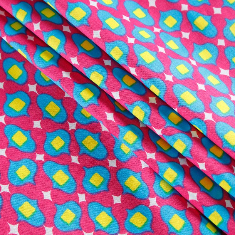 Сатин-коттон стрейч 063-12323 розовый принтованный