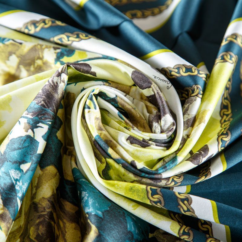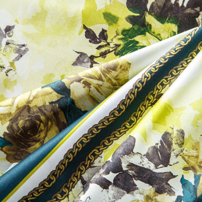 Сатин стрейч 001-07887 желтый принтованный в Норильске