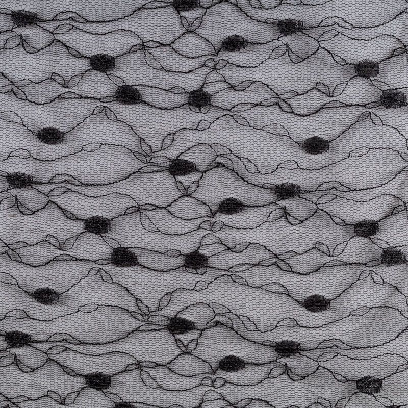 Тонкое, нежное, мягкое и прозрачное полотно, состоящее из мелких ячеек, на которых нанесен рельефный плетеный растительный принт. Красиво драпируется, тянется, применяется для декорирования деталей одежды, например, рукавов изделия, для пошива нарядной и повседневной одежды: топов, блузок, пышных юбок и платьев.