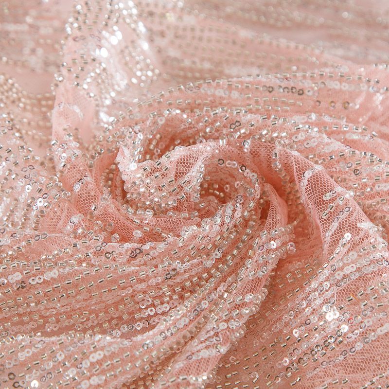 Сетка с бисером и пайетками 050-17615 кораллово-розовый в Норильске