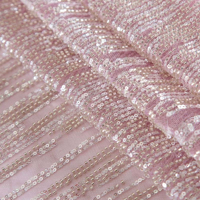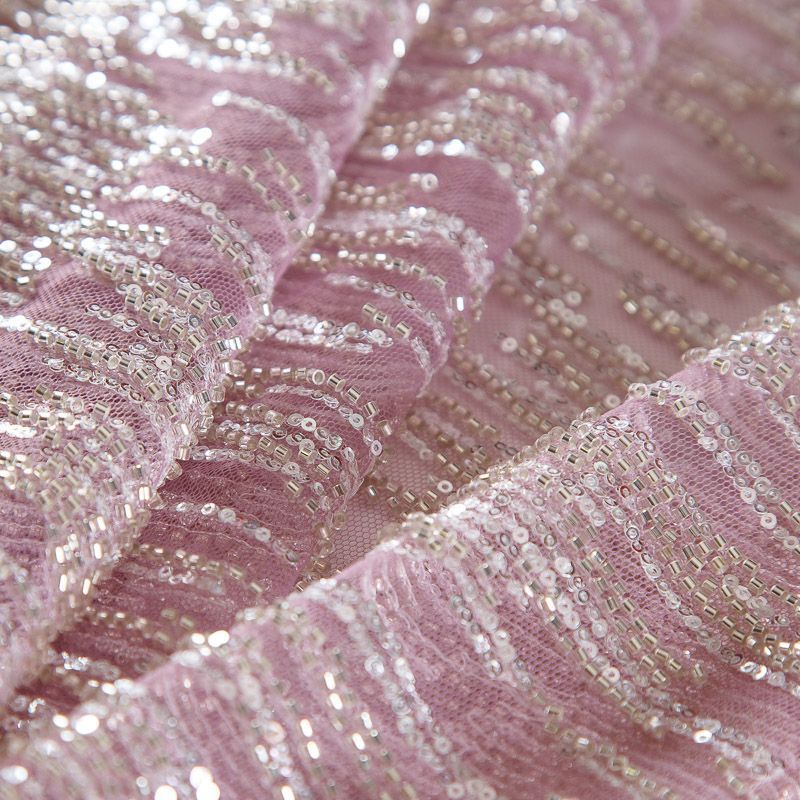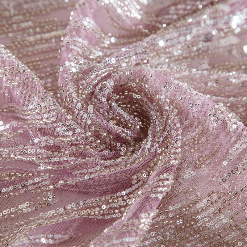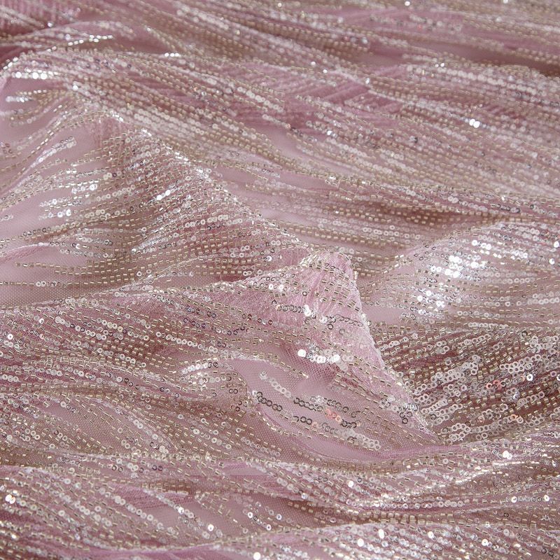 Сетка с бисером и пайетками 050-17745 розовый в Норильске
