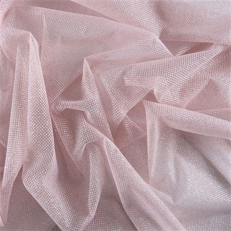 Рельефный прозрачный материал с сетчатой структурой. Поверхность полотна с металлизорованным глиттером, который придает материалу блеск и мерцание. Полотно жесткое, не тянется, отлично держит форму. Сетки нашли свое применение в процессе пошива и последующего декора вечерних нарядов, свадебных платьев, спортивной одежды, театральных костюмов.