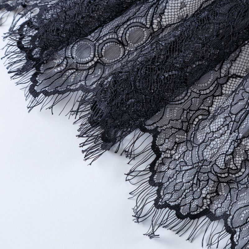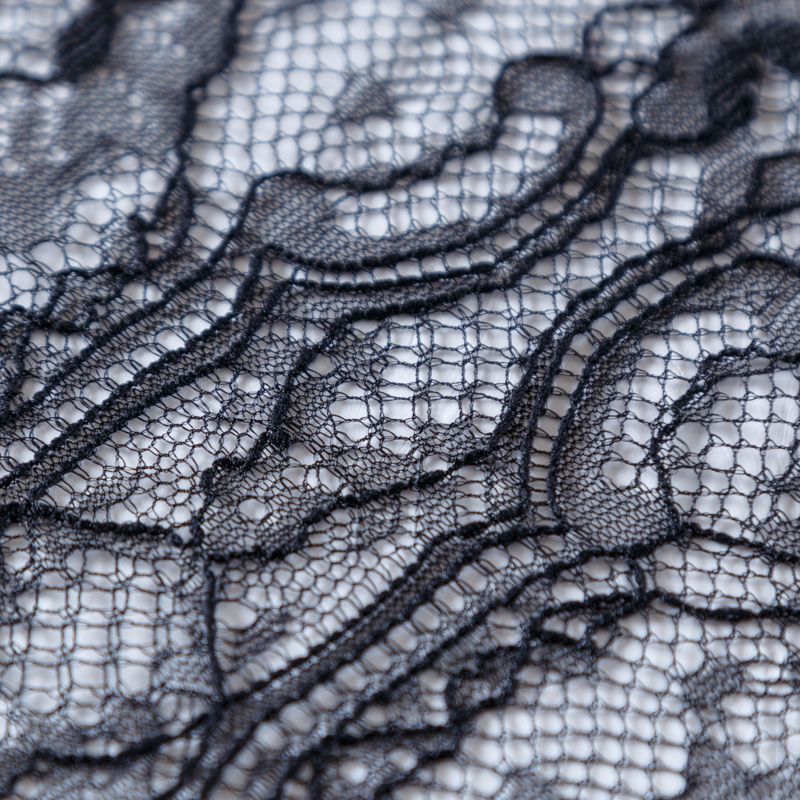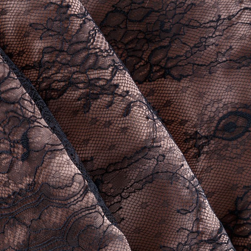 Французское шантильи черного цвета имеет тончайшее плетение волокон и состоит из нежнейшего кружева, которое используется для пошива свадебных нарядов, праздничных платьев. Вставки из кружева украсят любой офисный костюм, повседневное платье, юбку, блузу. Обе кромки кружева украшены фигурными фестонами. Наирается на изделие объемом.
