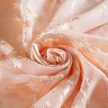 Итальянская полупрозрачная ткань из натурального шелка, созданная в технике "деворе" и олицетворяющая атласный мотив в персиковых оттенках на шифоне от бренда YSL. Материя мягкая и приятная на ощупь, пластично и воздушно драпируется - подойдет для вечерне-коктейльного платья или блузы.