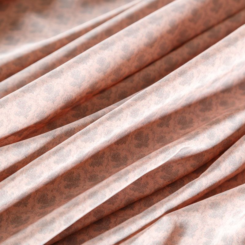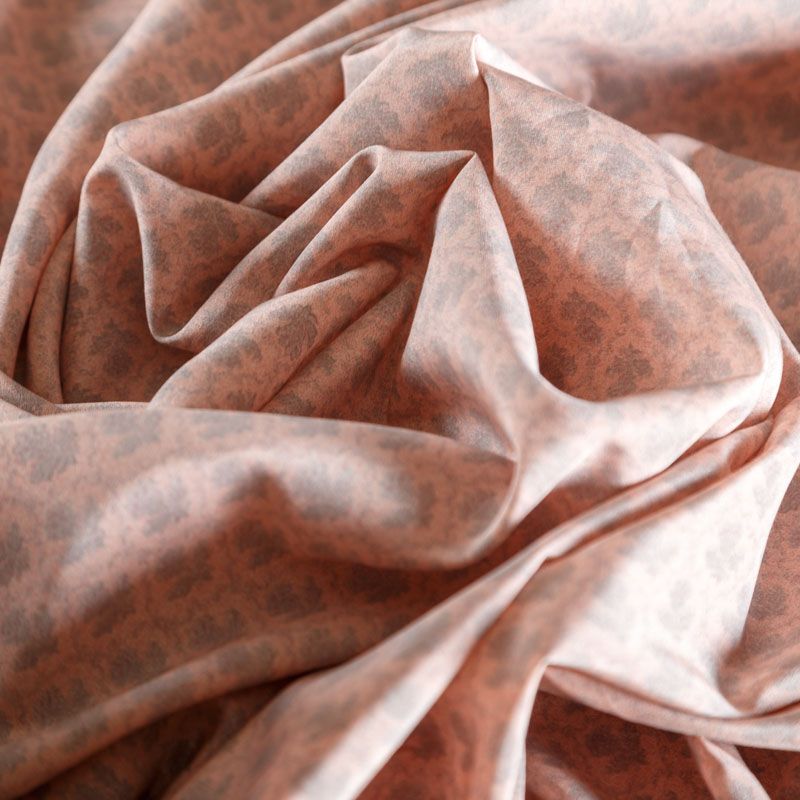Очень красивый и нежный шелковый батист с добавлением хлопка в пудрово-розовом оттенке с абстрактным принтом. Ткань тонкая, мягкая и легкая, не прозрачная, ее прикосновения к телу очень приятны, в изделии из него будет комфортно как в жару, так и в прохладную погоду. Лицевая сторона гладкая, с легким сатиновым блеском. Прекрасно подойдет для пошива летнего сарафана, платья, блузки, топа, туники, костюма в пижамном стиле, широких брюк или юбки.