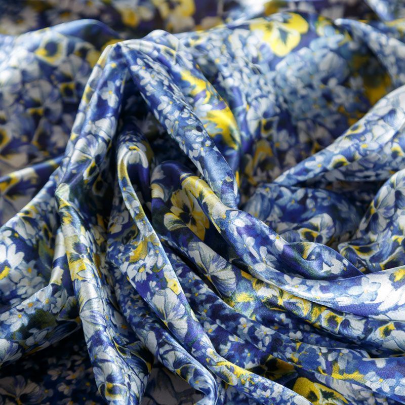 Шелк-батист натуральный К18-190 синий принтованный в Норильске