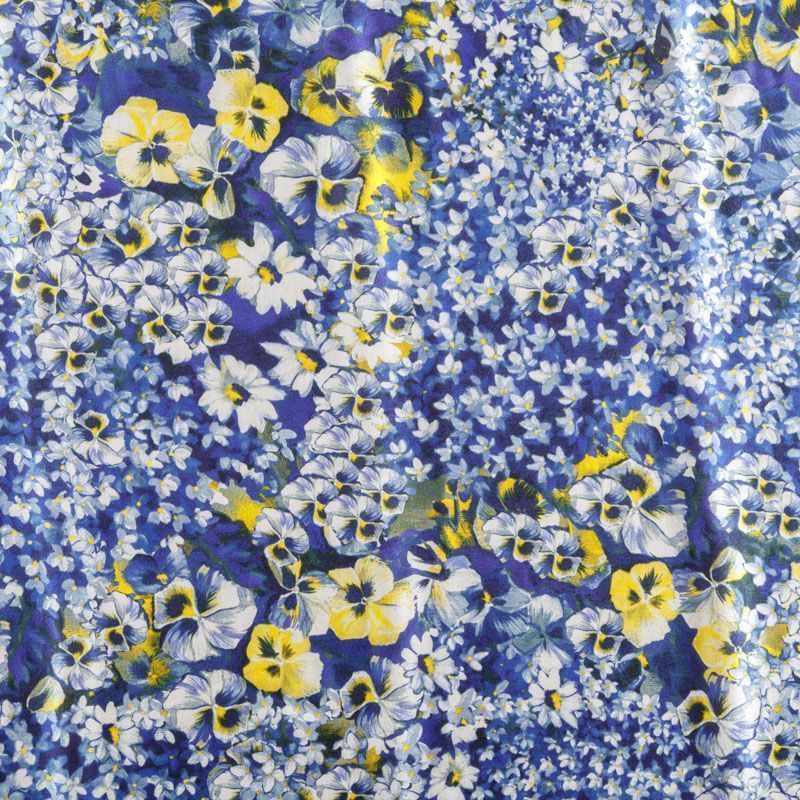 Очень красивый и нежный шелковый батист с добавлением хлопка в синем цвете с цветочным принтом. Ткань тонкая, мягкая и легкая, но достаточно плотная, не прозрачная, ее прикосновения к телу очень приятны, в изделии из него будет комфортно как в жару, так и в прохладную погоду. Лицевая сторона гладкая, с легким сатиновым блеском. Прекрасно подойдет для пошива летнего сарафана, платья, блузки, топа, туники, костюма в пижамном стиле, широких брюк или юбки.