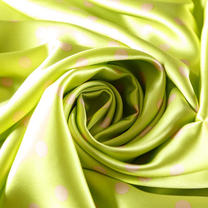 Итальянский атласный шелк в "аристократический" горошек на ярком фоне. Ткань тонкая, легкая, струится, хорошо драпируется. Поверхность гладкая, имеет благородный блеск. Подойдет смелых образов: летних платьев и сарафанов, как летящих фасонов, так и скроенных по косой, накидок, юбок, блузок, костюмов в пижамном стиле, туники, широких брюк, домашней одежды.